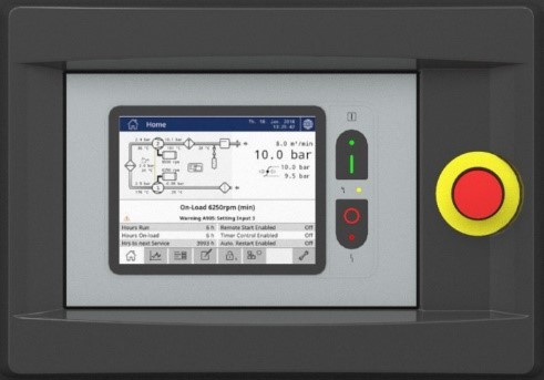 VEZÉRLÉS: Az XE Pro 200 mikroprocesszoron alapuló kompresszor-kezelő rendszer 8 hüvelykes grafikus színes érintőképernyős kijelzővel kombinálva figyeli és védi a kompresszort, valamint teljes állapotjelzést nyújt a kezelőnek. A rajta lévő IoT vezérlővel készen áll a teljes Ipari 4.0 csatlakozásra, folyamatos figyeléssel, bármikor, bárhol, felszabadítva az E-sorozatban rejlő teljes felhasználási potenciált. Az irányítási rendszer rugalmasan képes a vezérlési funkciók széles skáláját biztosítani, amelyek a következők: