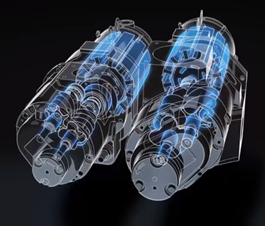 MOTOR MEGHAJTÁS: A teljes áramlási tartomány teljesítőképességének optimalizálása érdekében a sűrítési fokozatokat az igénytől függően különböző sebességgel kell meghajtani. Nem lehetséges egyetlen motorral mindkét kompressziós fokozatot minden fordulatszámon optimális szinten hajtani. Az új tervezésű E-sorozat intelligens digitális sebességváltó-konstrukciót alkalmaz, amely folyamatosan figyeli és egymástól függetlenül állítja be az egyes sűrítési fokozatok sebességét a maximális hatékonyság és a nyomásviszonyok biztosítása érdekében. A szokásos motor kialakítás esetén - köszönhetően a kialakításnak - súrlódás keletkezhet, ami teljesítménycsökkenést eredményez. Az E-sorozatú állandó mágneses szinkron motor súrlódási veszteséget nem szenved. Ez rendkívül kompakt motort eredményez, kivételes - IE4-nél nagyobb - hatékonysággal. Az E-sorozat motorjai akár 22 000 fordulat / perc fordulatszámon foroghatnak. Az E-sorozatú motorok vízhűtésűek, ezzel biztosítva a maximális energiahatékonyságot, valamint ennek köszönhetően rendkívül kompakt méretűek a hagyományos motorokhoz képest. |